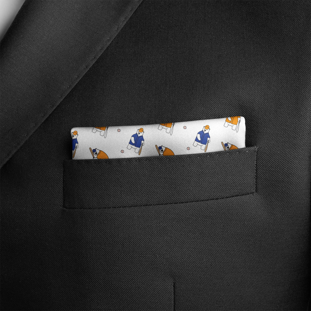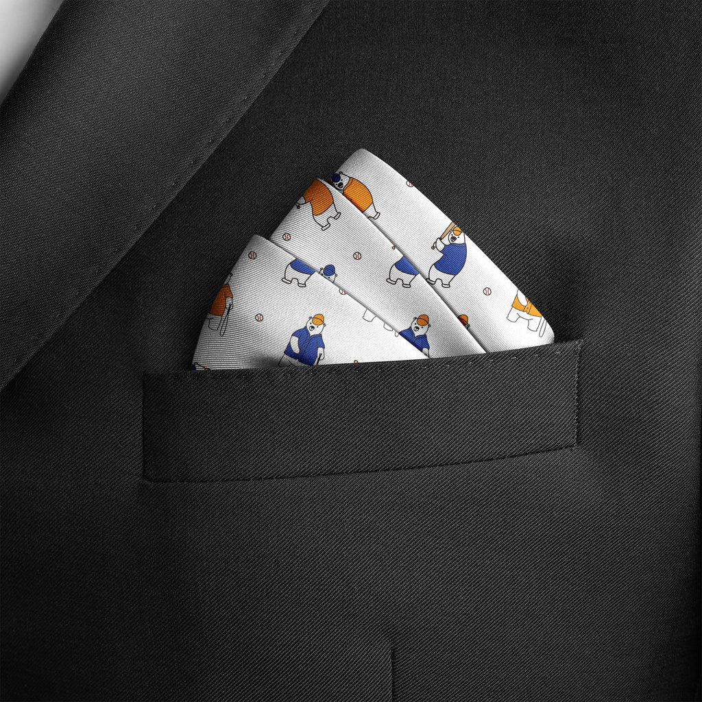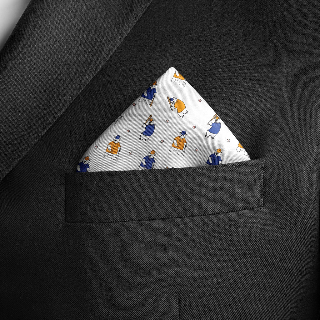 Capture your fold in seconds, and secure it in place all day with a custom printed RARE CUT pocket square in our limited edition "Polar Bear Smash" print.