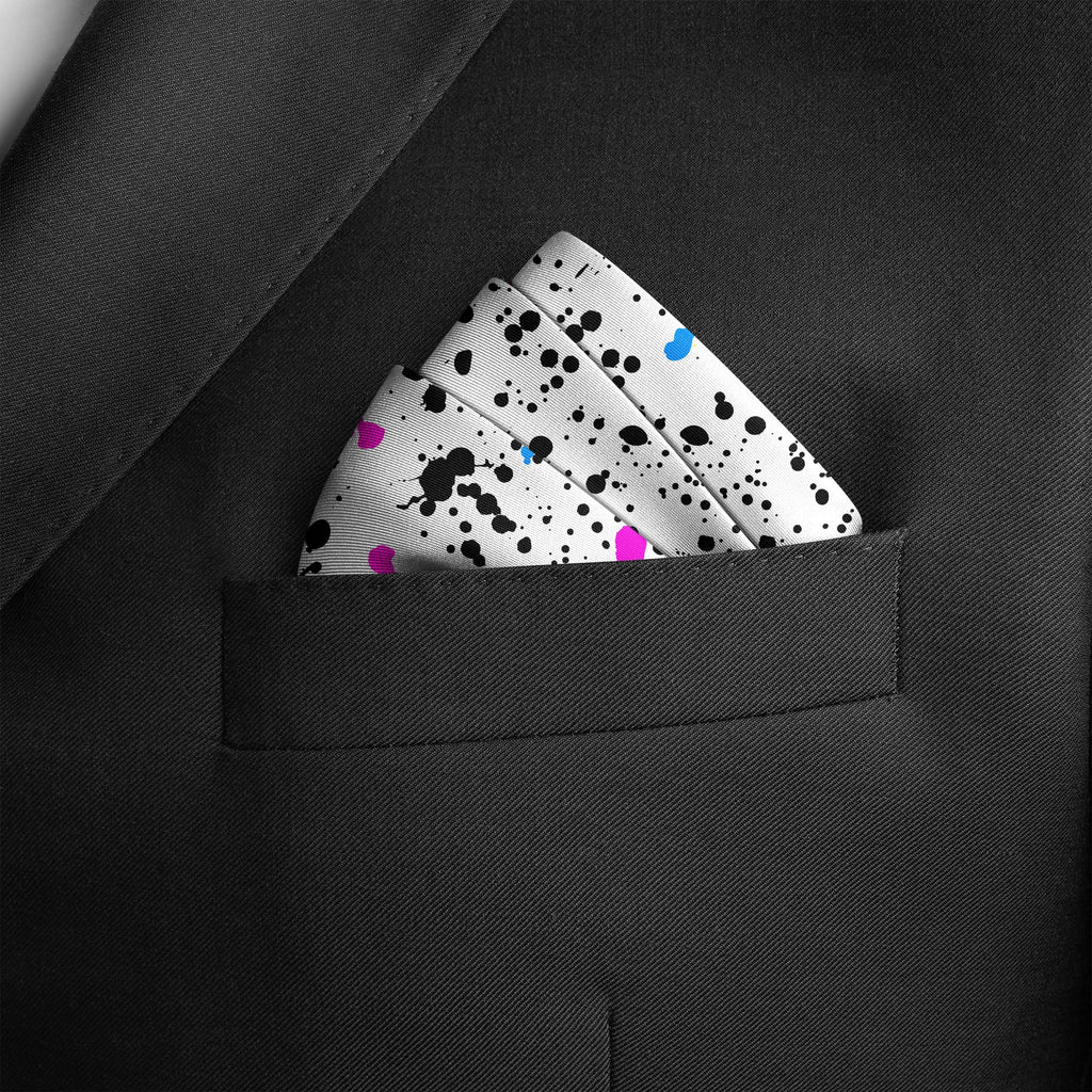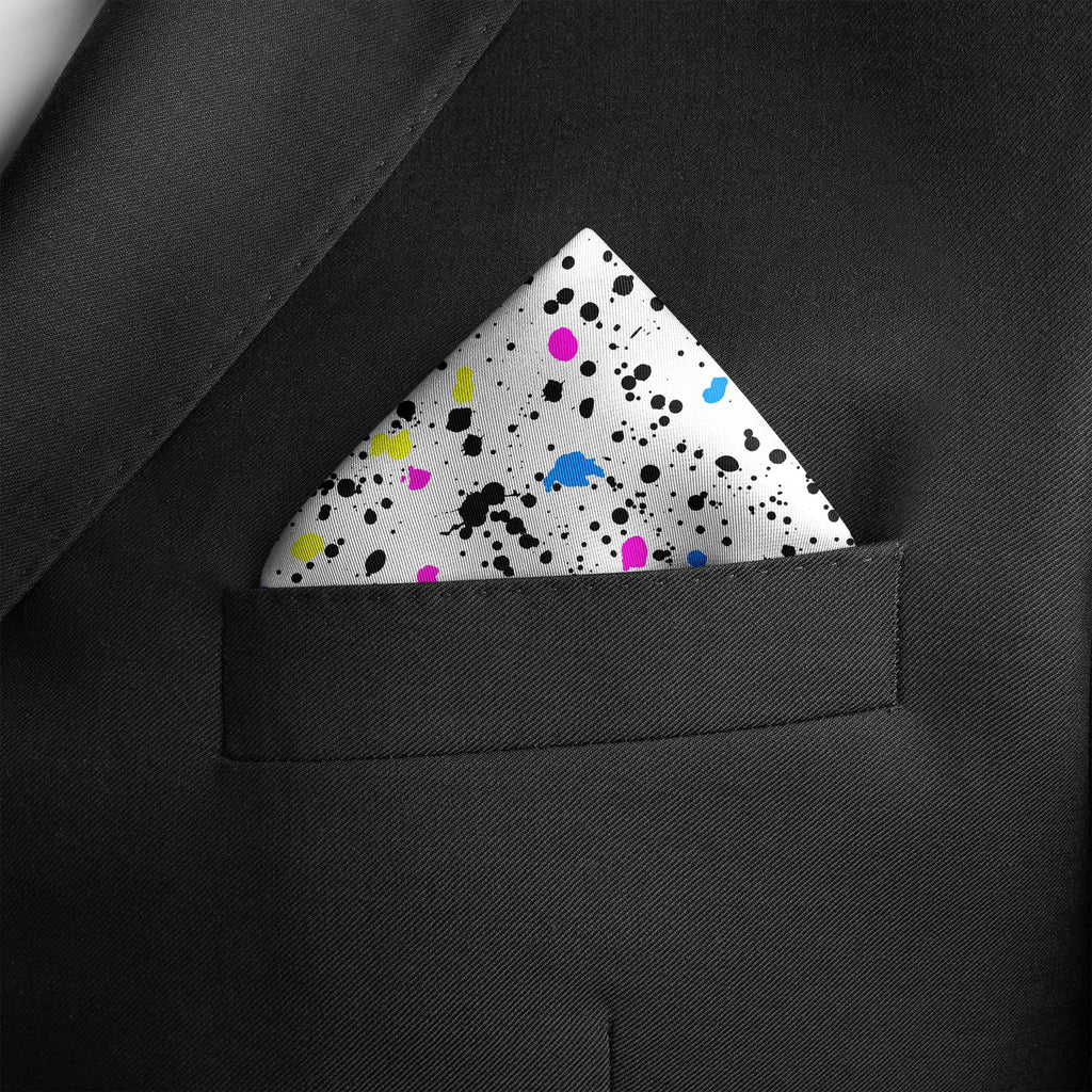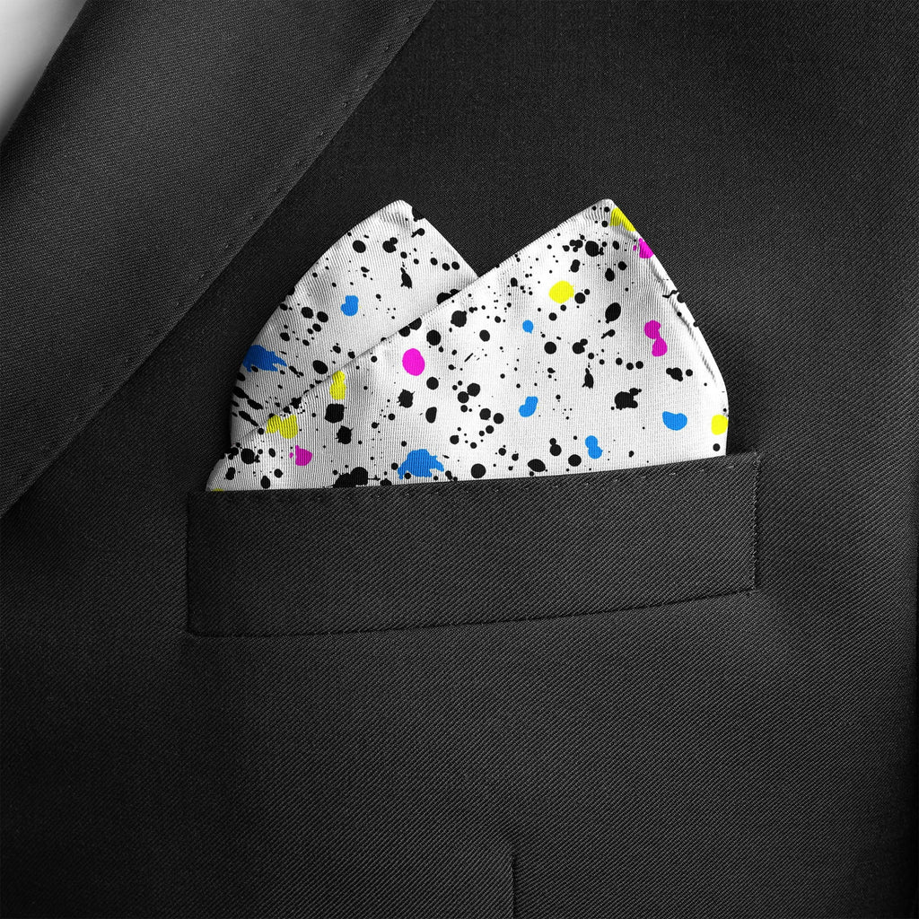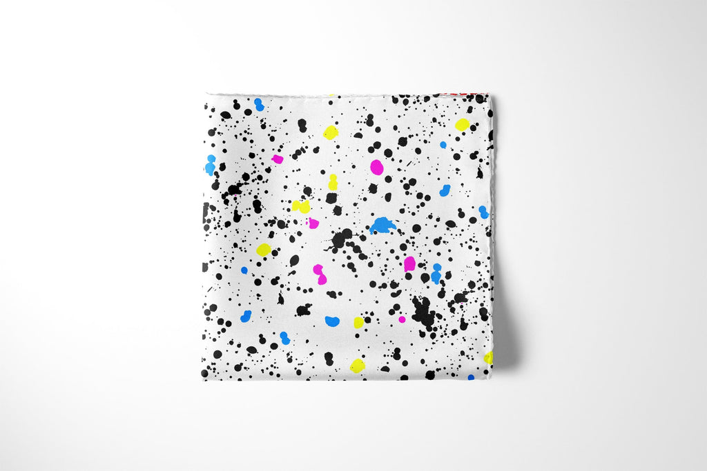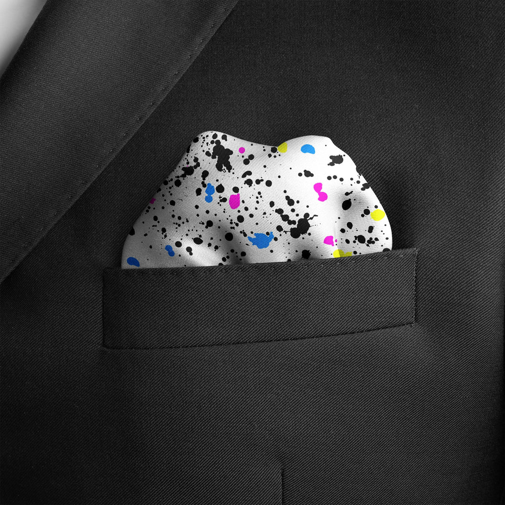Capture your fold in seconds, and secure it in place all day with a custom printed RARE CUT pocket square in our limited edition "Painter's Splash" print.