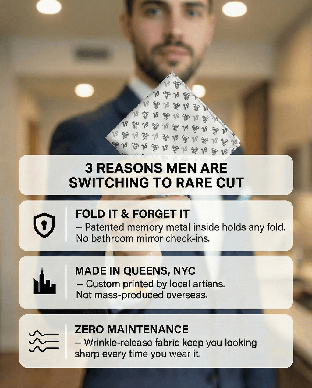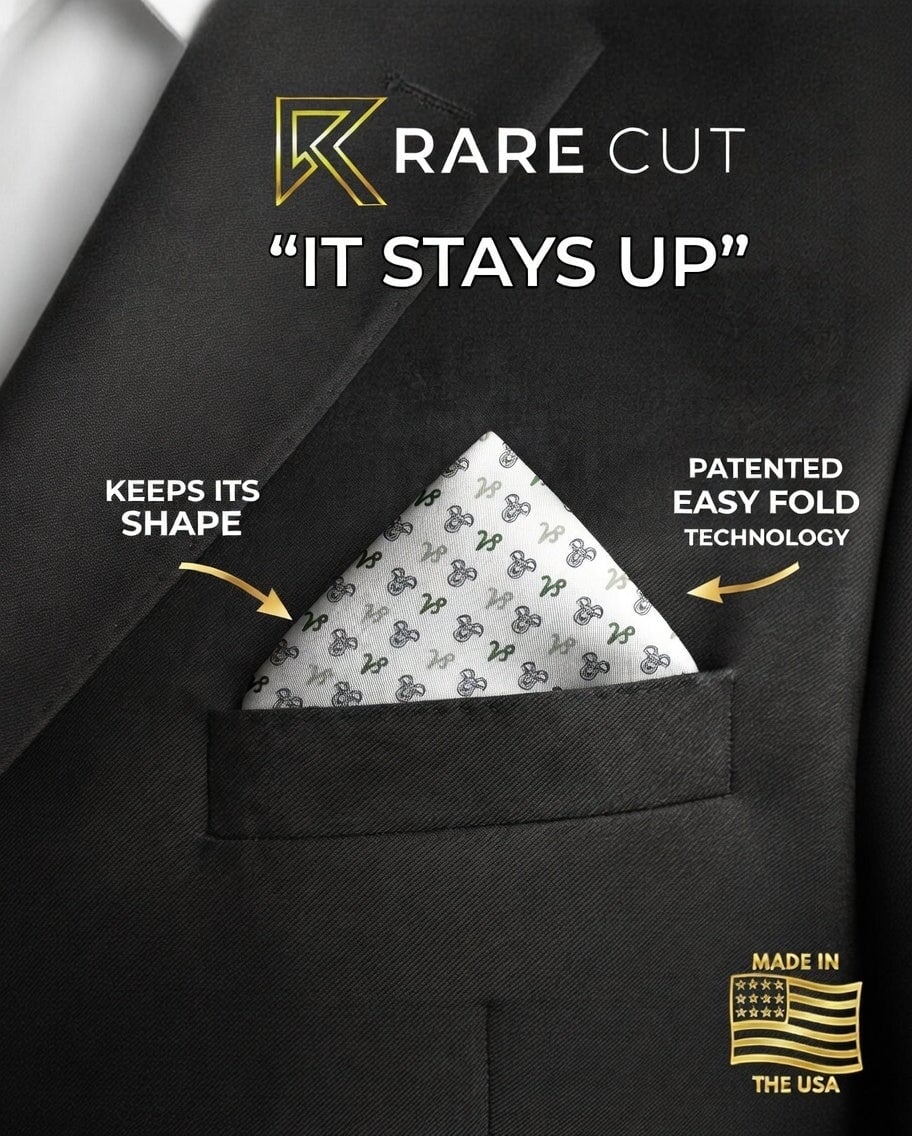 Capture your fold in seconds, and secure it in place all day with a custom printed RARE CUT pocket square in our limited edition "Capricorn" print.