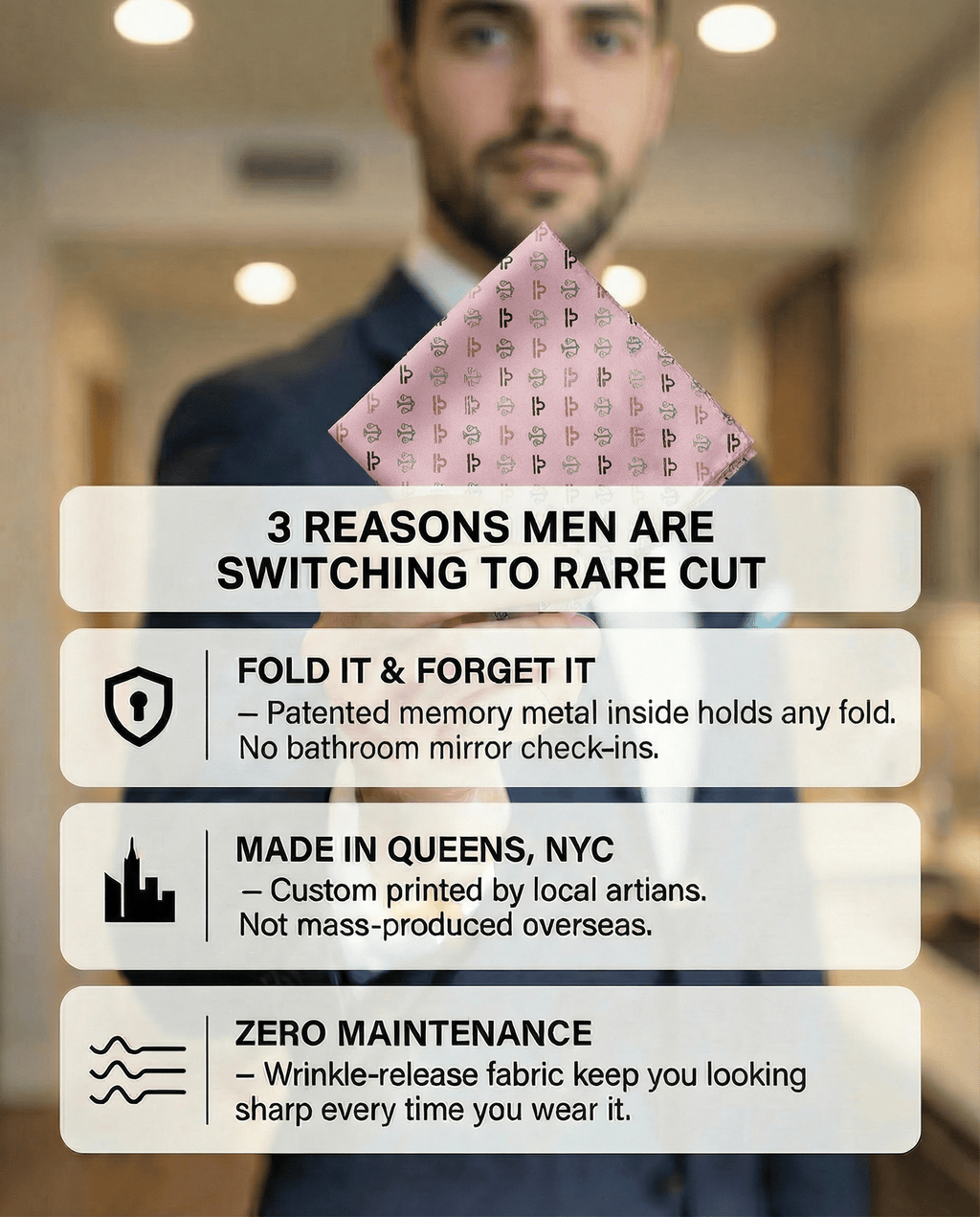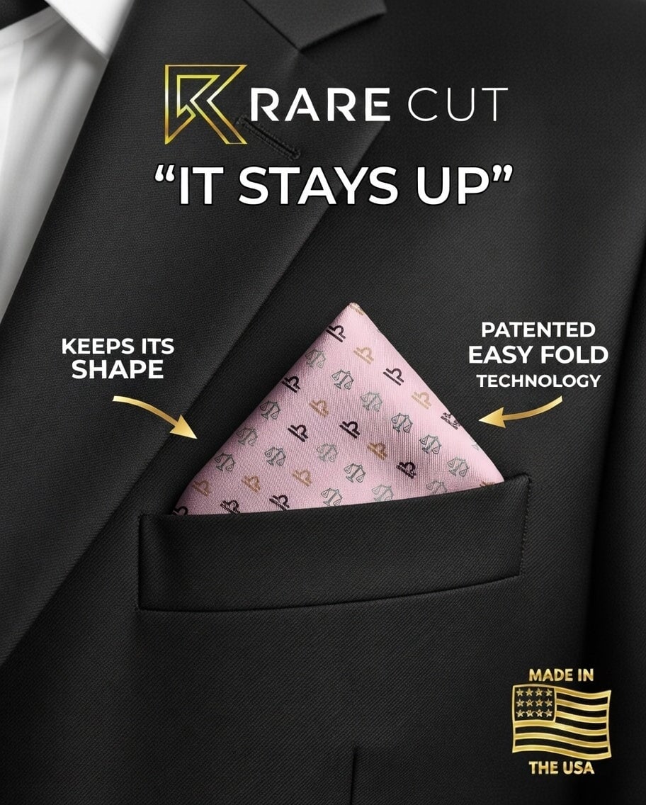 Capture your fold in seconds, and secure it in place all day with a custom printed RARE CUT pocket square in our limited edition "Libra" print.
