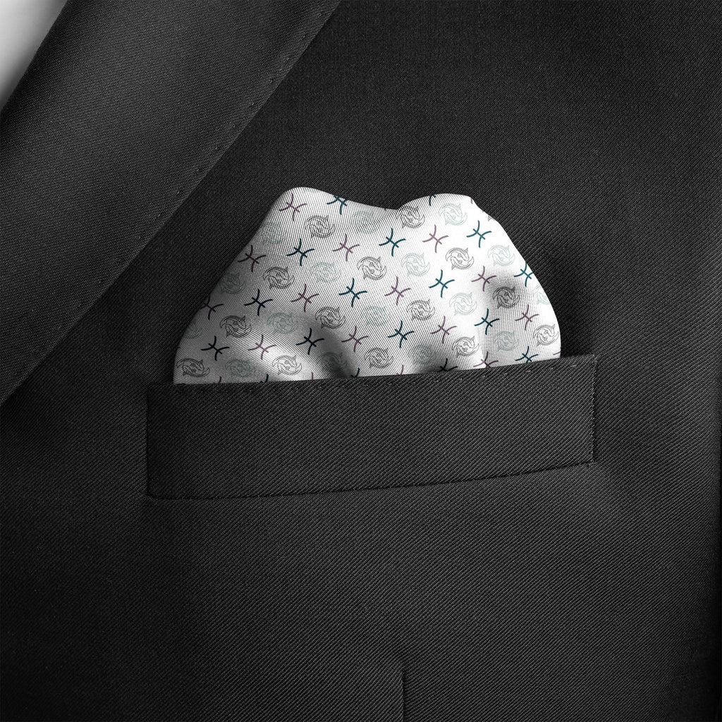 Capture your fold in seconds, and secure it in place all day with a custom printed RARE CUT pocket square in our limited edition "Pisces" print.