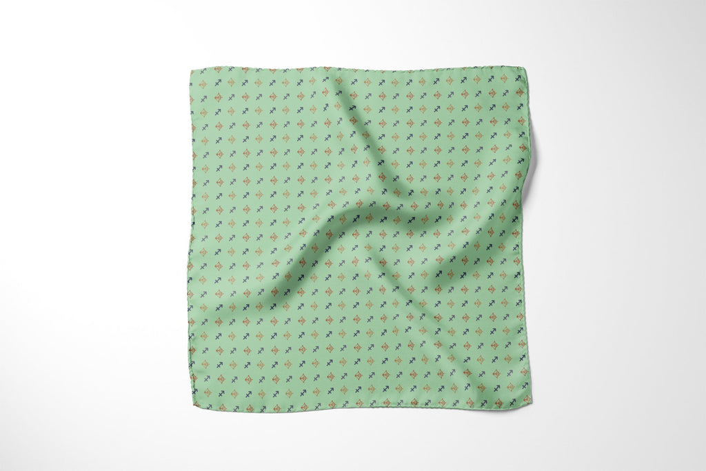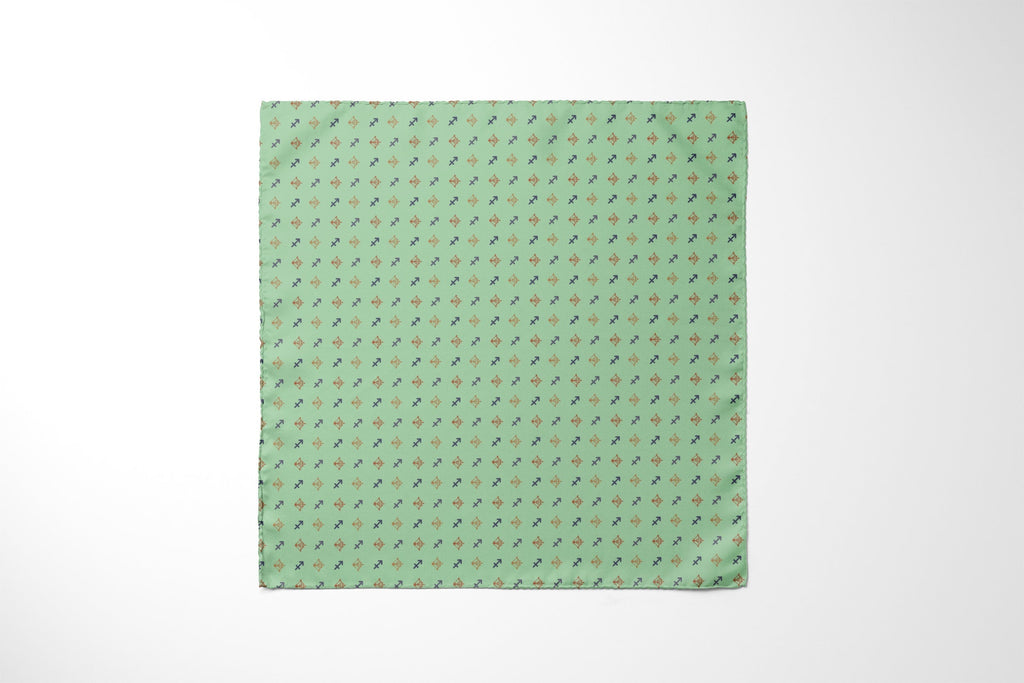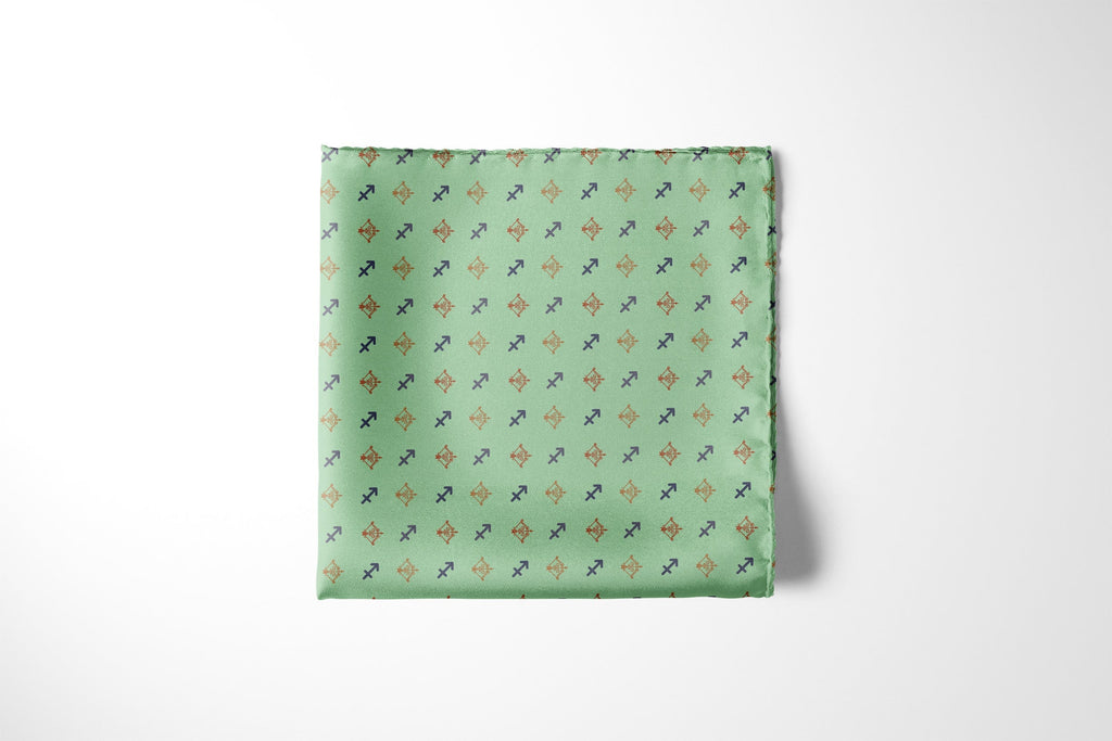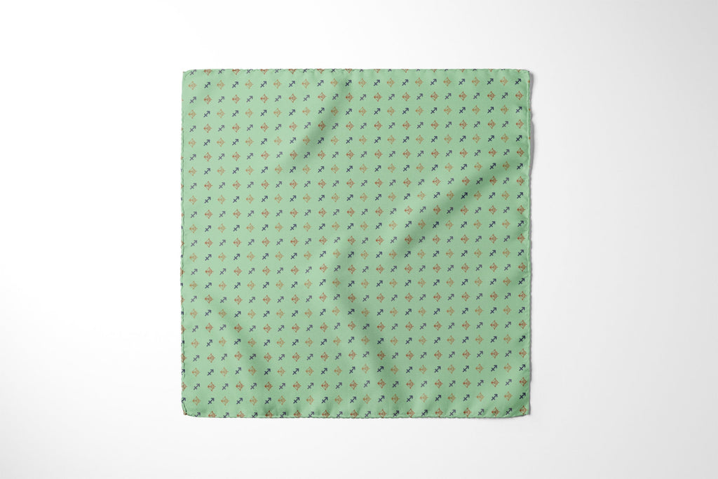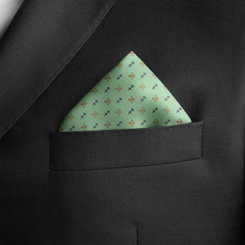 Capture your fold in seconds, and secure it in place all day with a custom printed RARE CUT pocket square in our limited edition "Sagittarius" print.