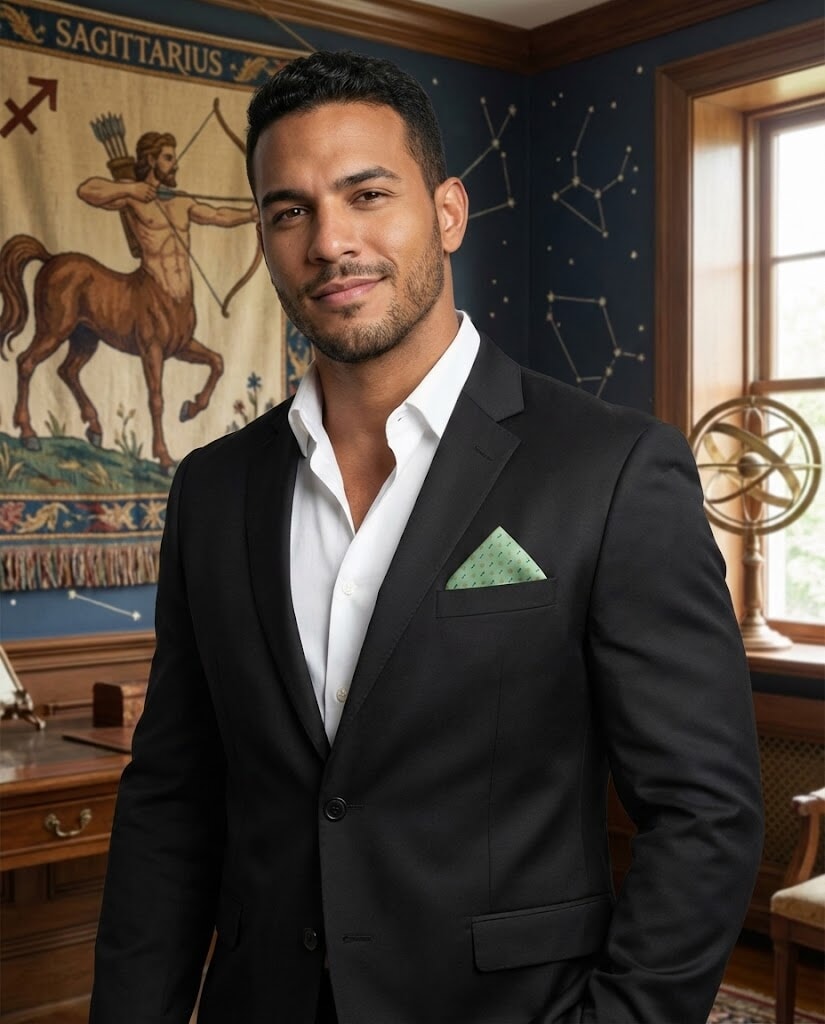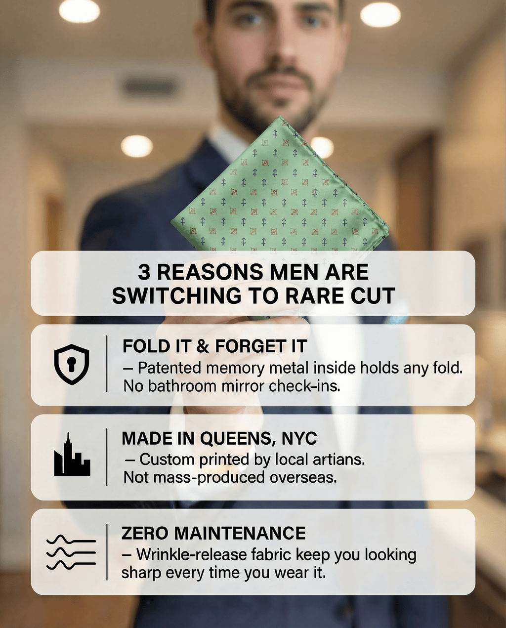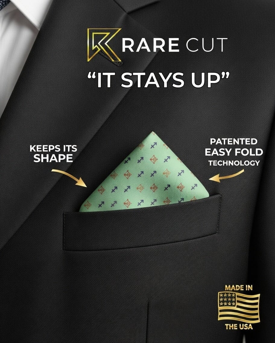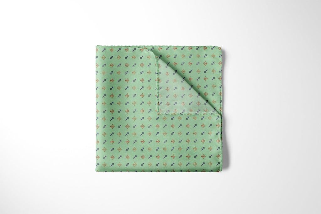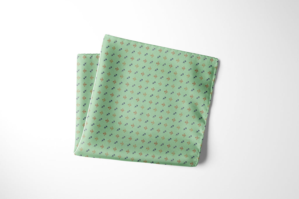 Capture your fold in seconds, and secure it in place all day with a custom printed RARE CUT pocket square in our limited edition "Sagittarius" print.
