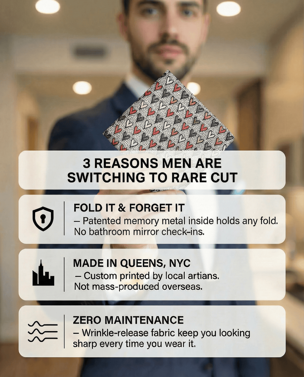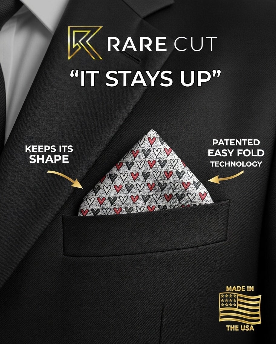 Capture your fold in seconds, and secure it in place all day with our limited edition "Mr. Lover Lover" pocket square print.