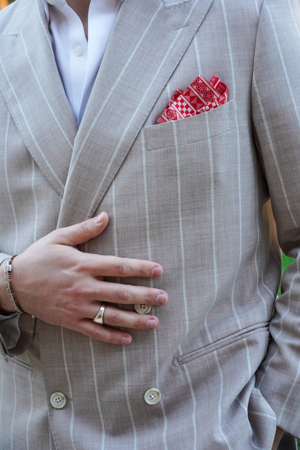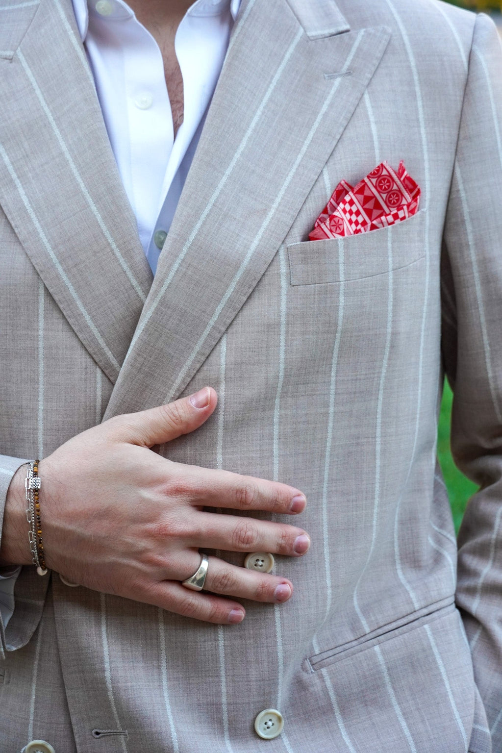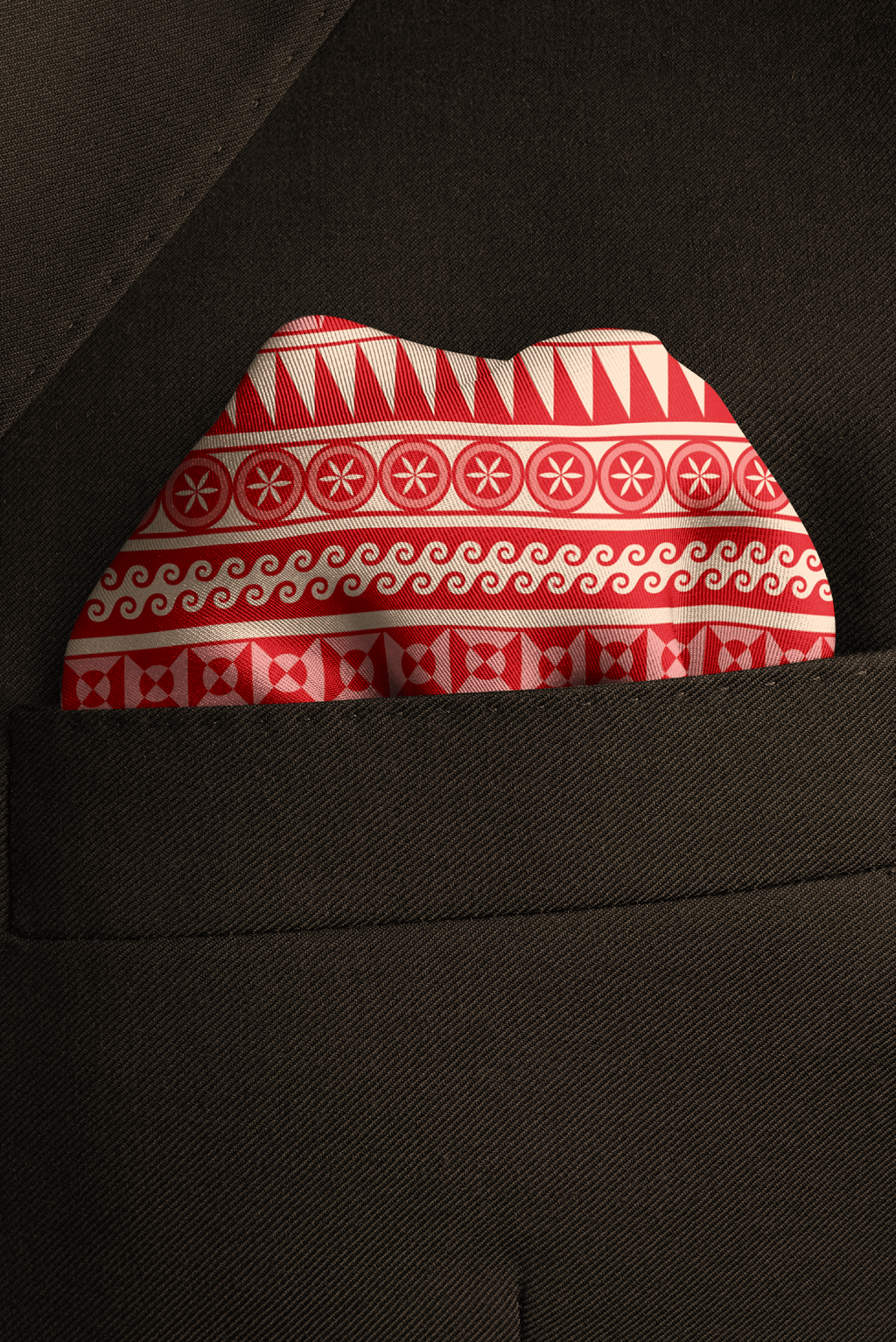 Our collaboration with Selini Shop. The Pyrgi pocket square draws inspiration from the intricate patterns of Chios' famed village. A modern homage to Greek craftsmanship and architectural beauty.