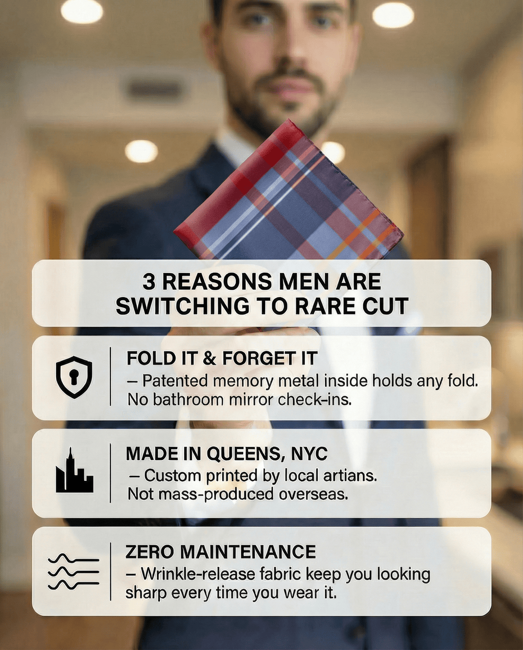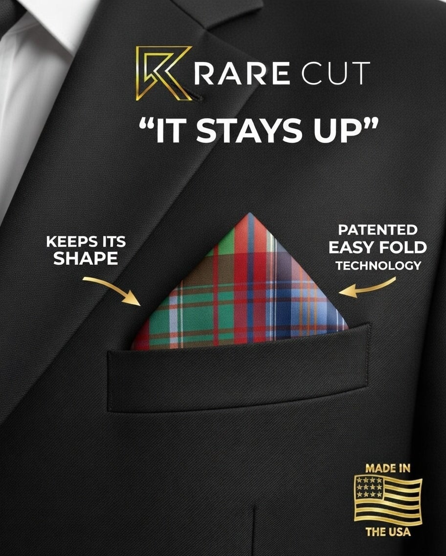Capture your fold in seconds, and secure it in place all day with a custom printed RARE CUT pocket square in our limited edition "Rockaway Beach" print.