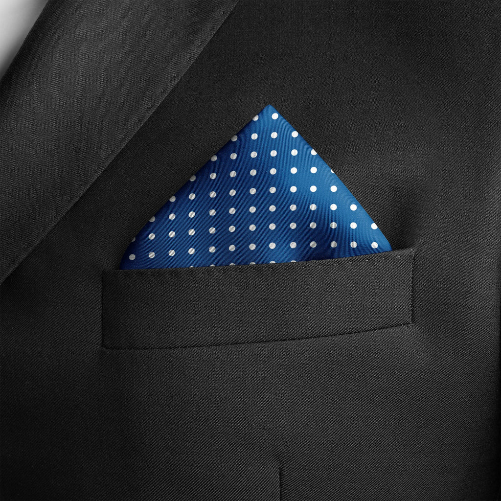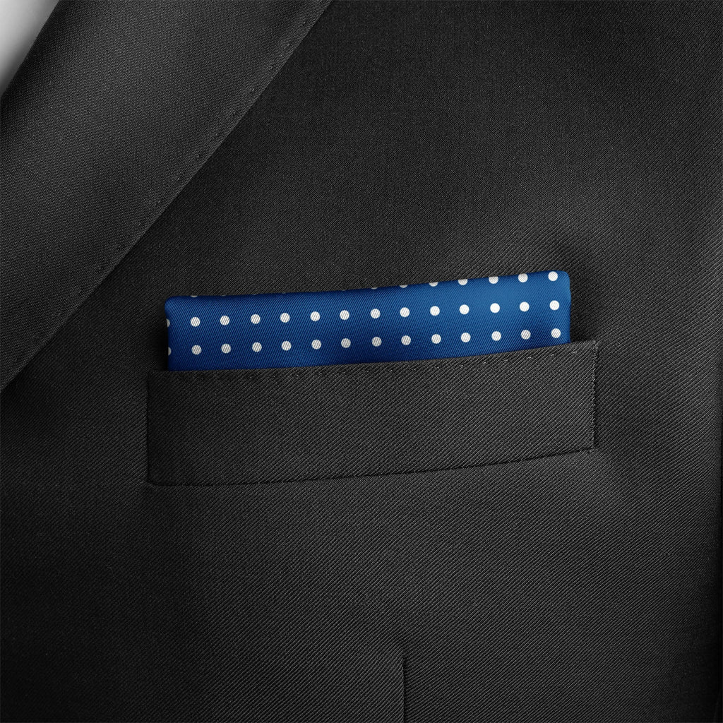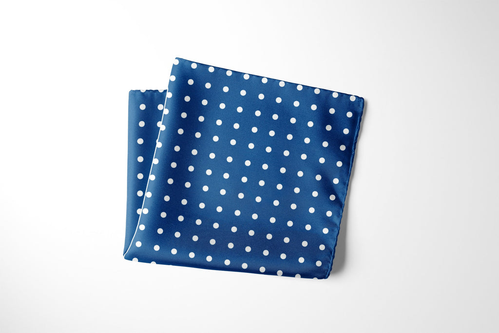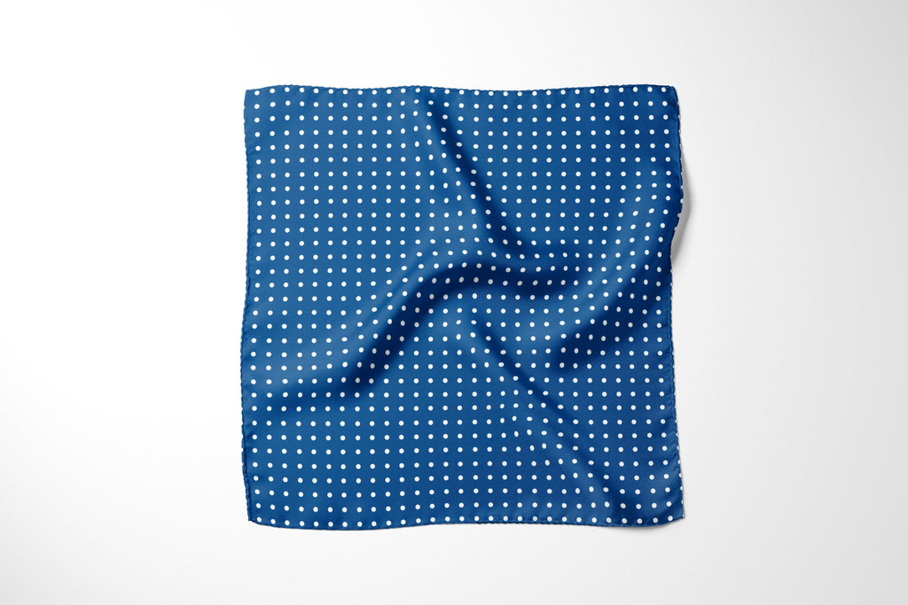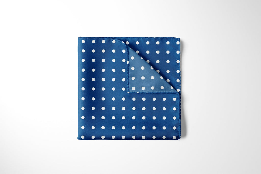Capture your fold in seconds, and secure it in place all day with a custom printed RARE CUT pocket square in our limited edition "Royal Dots" print.
