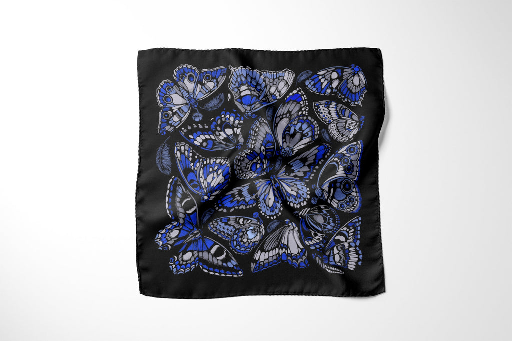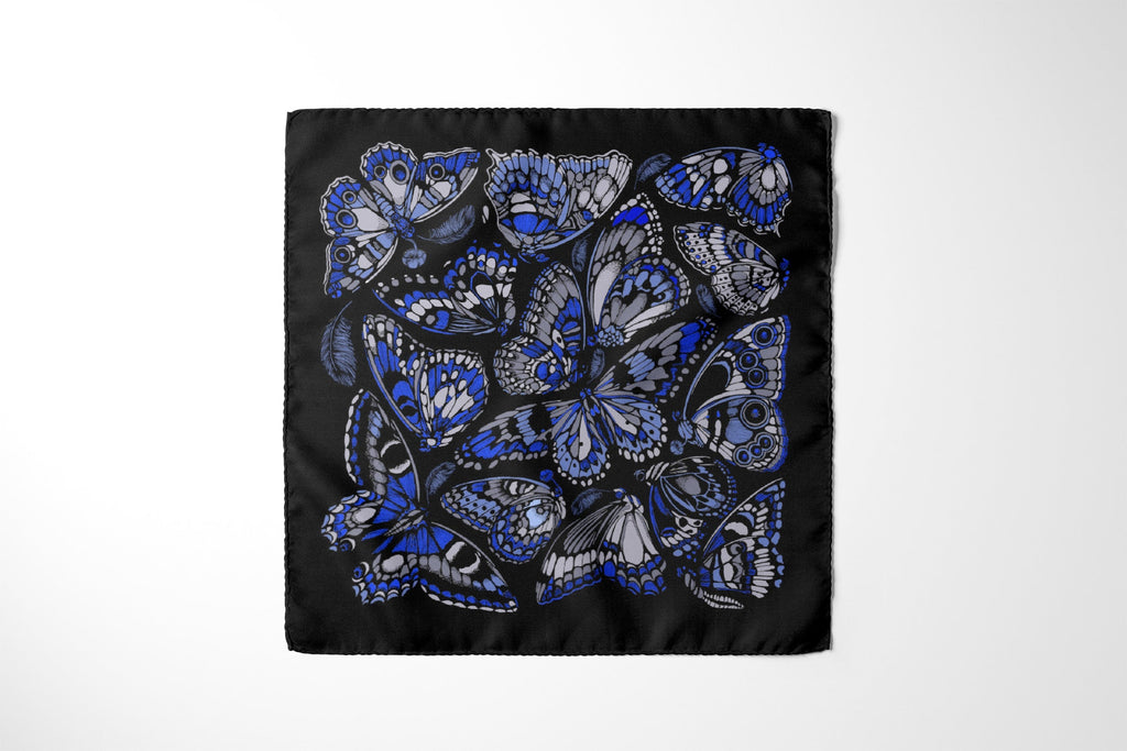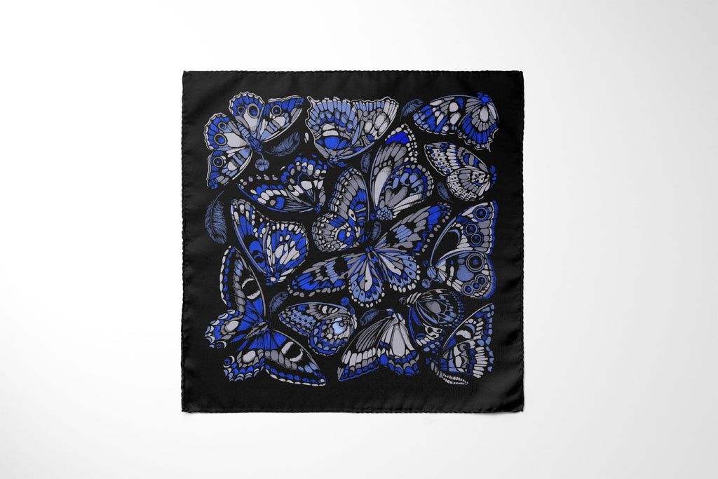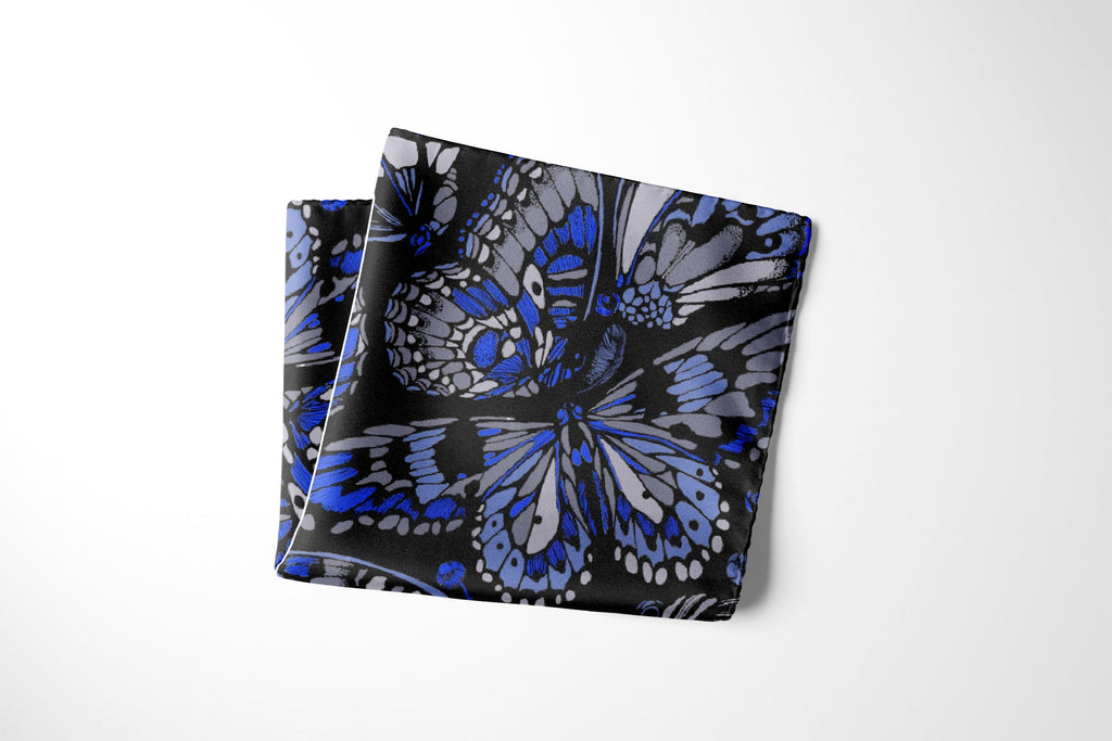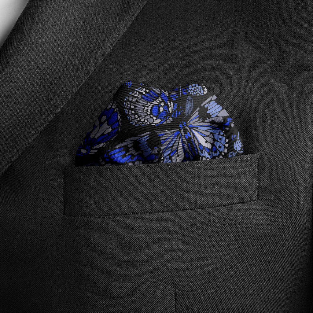 Capture your fold in seconds, and secure it in place all day with a custom printed RARE CUT pocket square in our limited edition "The Butterfly Effect" print.